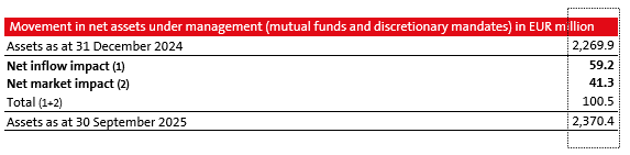 The Group's total assets under management as at 30 September 2025 amounted to EUR 6.3 billion, a 6% increase compared to 31 December 2024.